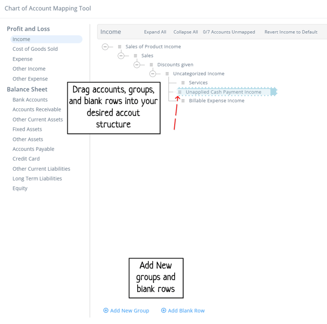 - In each accounting category, the Mapping Tool will show the number of new/unmapped accounts that need attention
