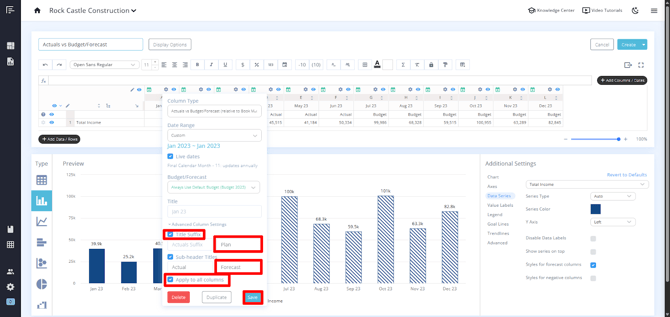 How to Use Actuals vs Budget/Forecast Column Type