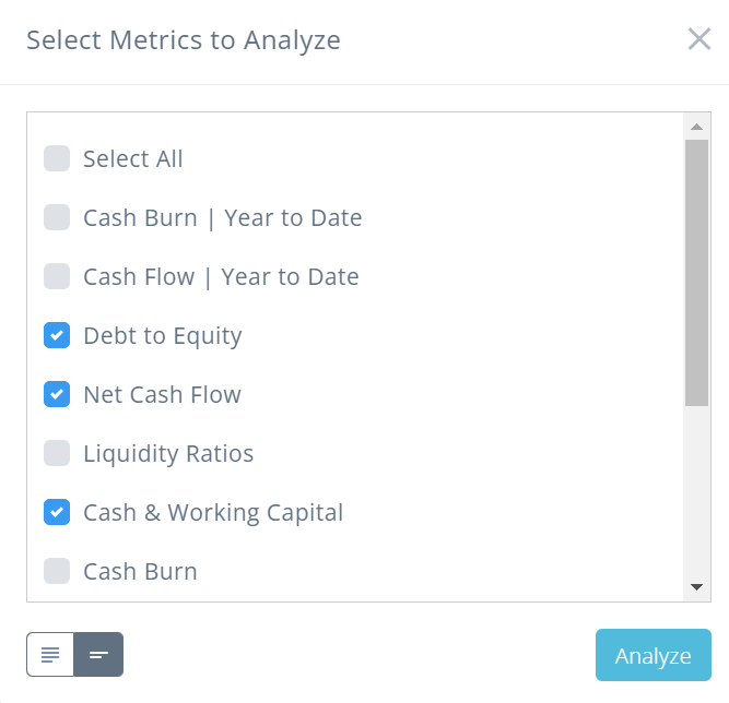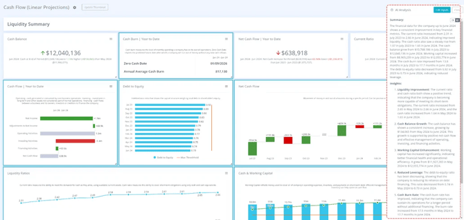 AI analysis takes the guesswork and subjectivity out of visual analytics and provides a great starting point for preliminary business intelligence analysis. It can be used by teams who don't have advanced technical expertise. Simply click on the AI icon on a report or dashboard to analyze any or all metrics and statements.
