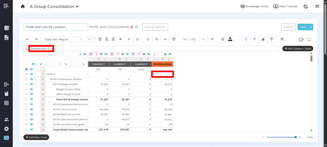 You can then hide the location rows, add in a custom column to show the average of all locations from your industry data, and add in additional columns to compare between your practice and the industry average: