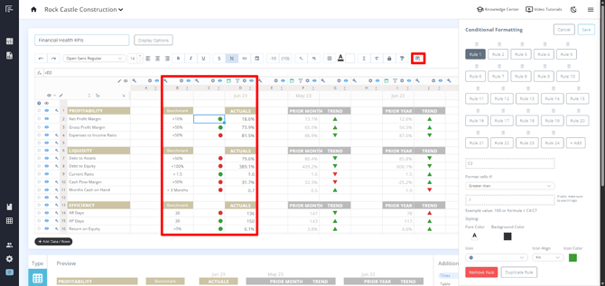 - Apply conditional formatting rules to highlight positive or negative variances from benchmark amounts