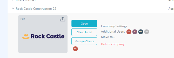 First, expand the company that the client is assigned to by clicking on it. Then, locate and click on the "Manage Clients" option. A pop-up window will appear, displaying a list of clients associated with that company.