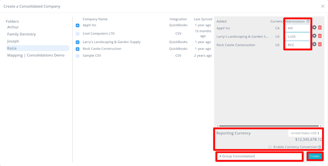 - Set abbreviations - Assign each individual company within the consolidation a short abbreviation for easy identification