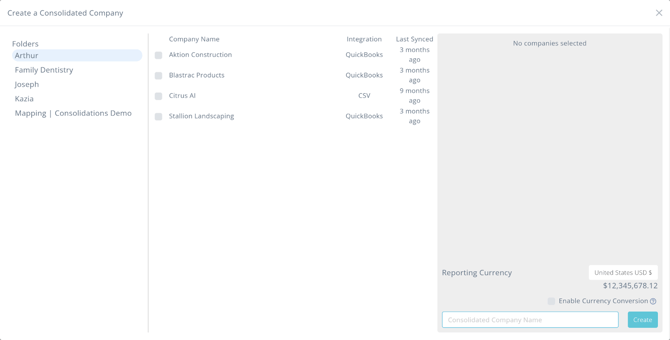 Choose which companies you wish to consolidate. Important: You can only consolidate companies from similar bookkeeping software types:
