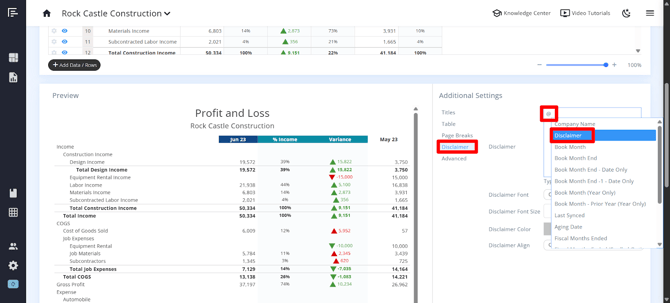 - Consistency: Set your disclaimer once in the Company Settings and use it across all reports and statements.