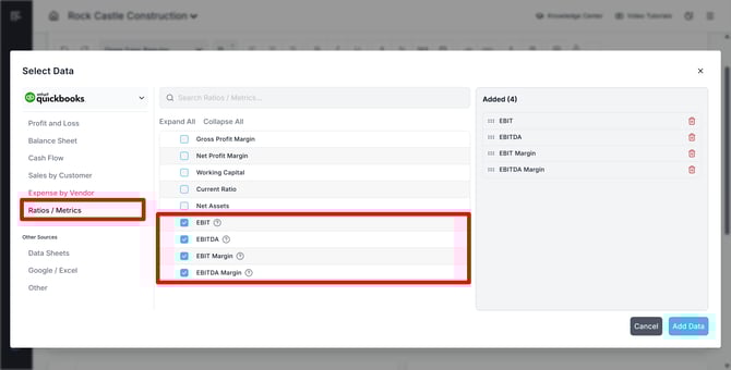 From the ratios and metrics section, these options are directly linked to the company's settings you configured, and they can be incorporated in your reports and dashboards as needed.