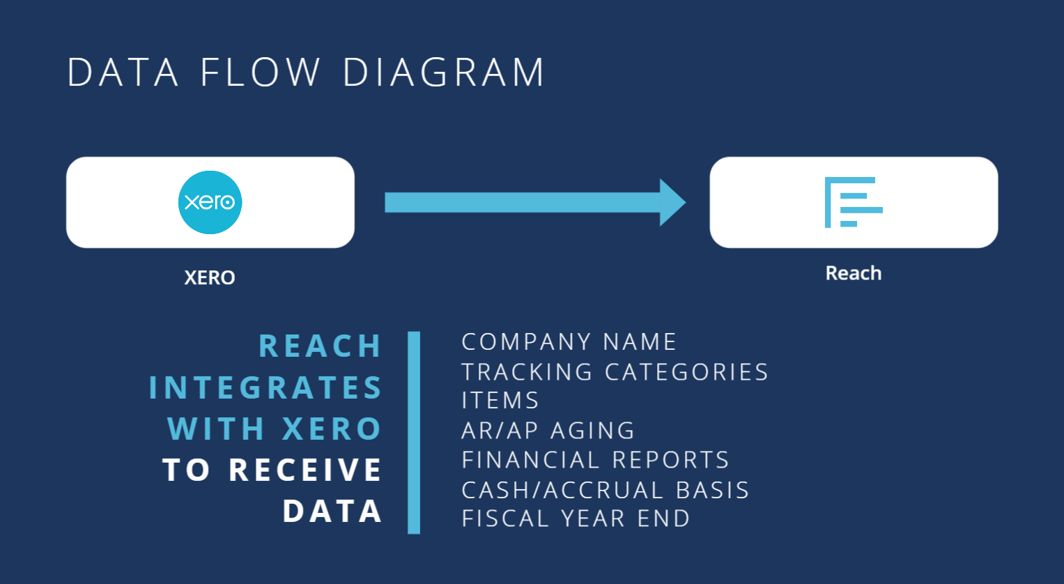Here is a diagram explaining how Reach connects to Xero to pull important data that can be used on the powerful Reach platform.
