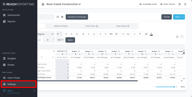 You can create a full three-way budget directly inside Reach Reporting using Budgets PRO. This gives you access to automated row drivers, Balance Sheet planning, Data Sheet calculations, and Cash Flow automation — all in a familiar spreadsheet environment.
