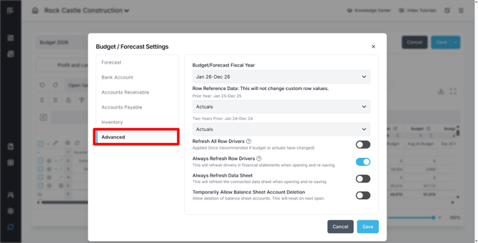 QBO and Xero budgets do not appear in the Budgets/Forecasts tab. Access them through the column settings in a metric or statement, or set them as the default budget in Company Settings. If you are not seeing the budget as an option, confirm that it has been created in QBO or Xero and that the company has synced recently.