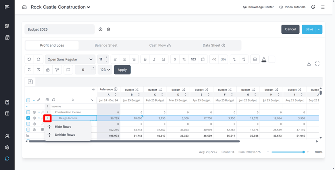 The Data Sheet is a built-in spreadsheet environment within your budget that lets you create custom calculations beyond what row drivers can handle.