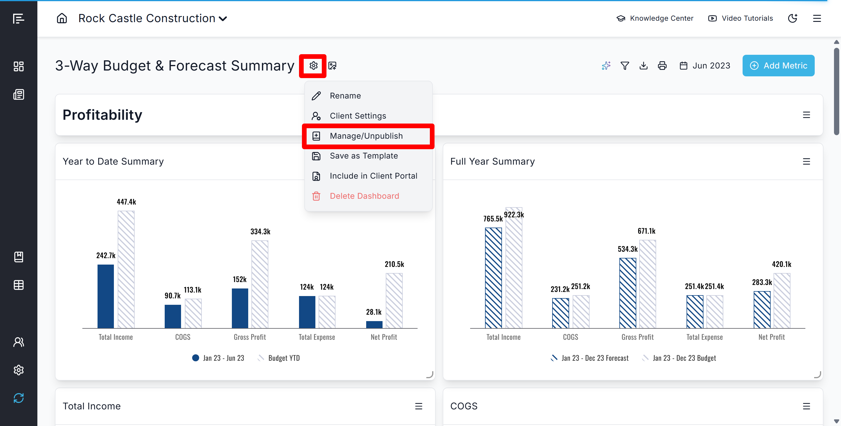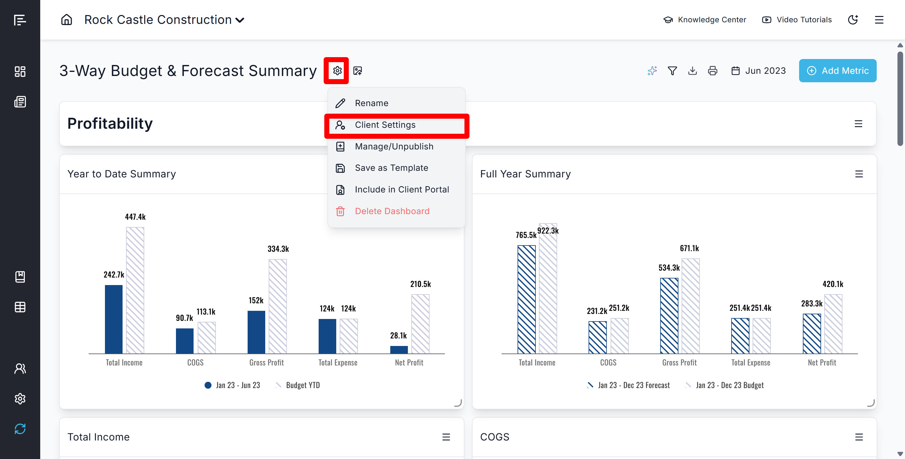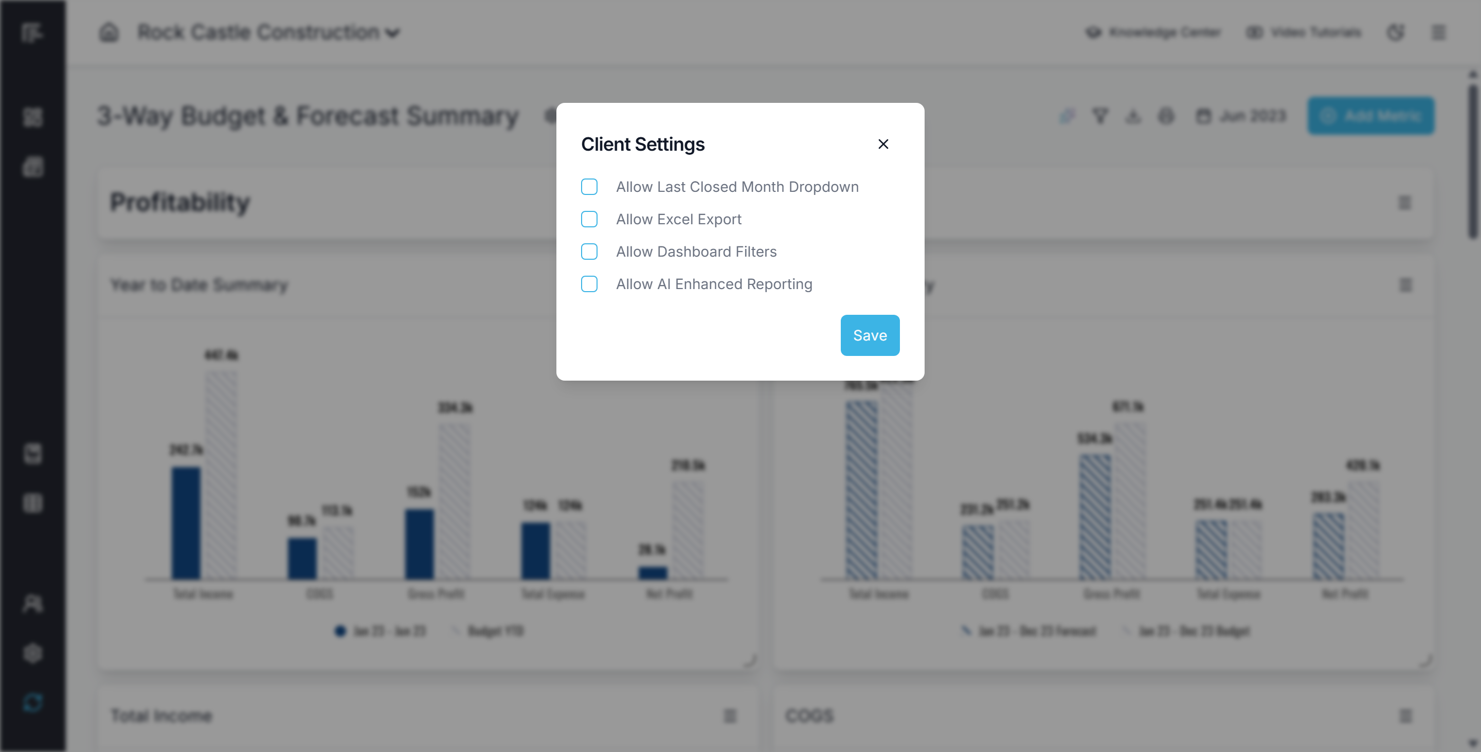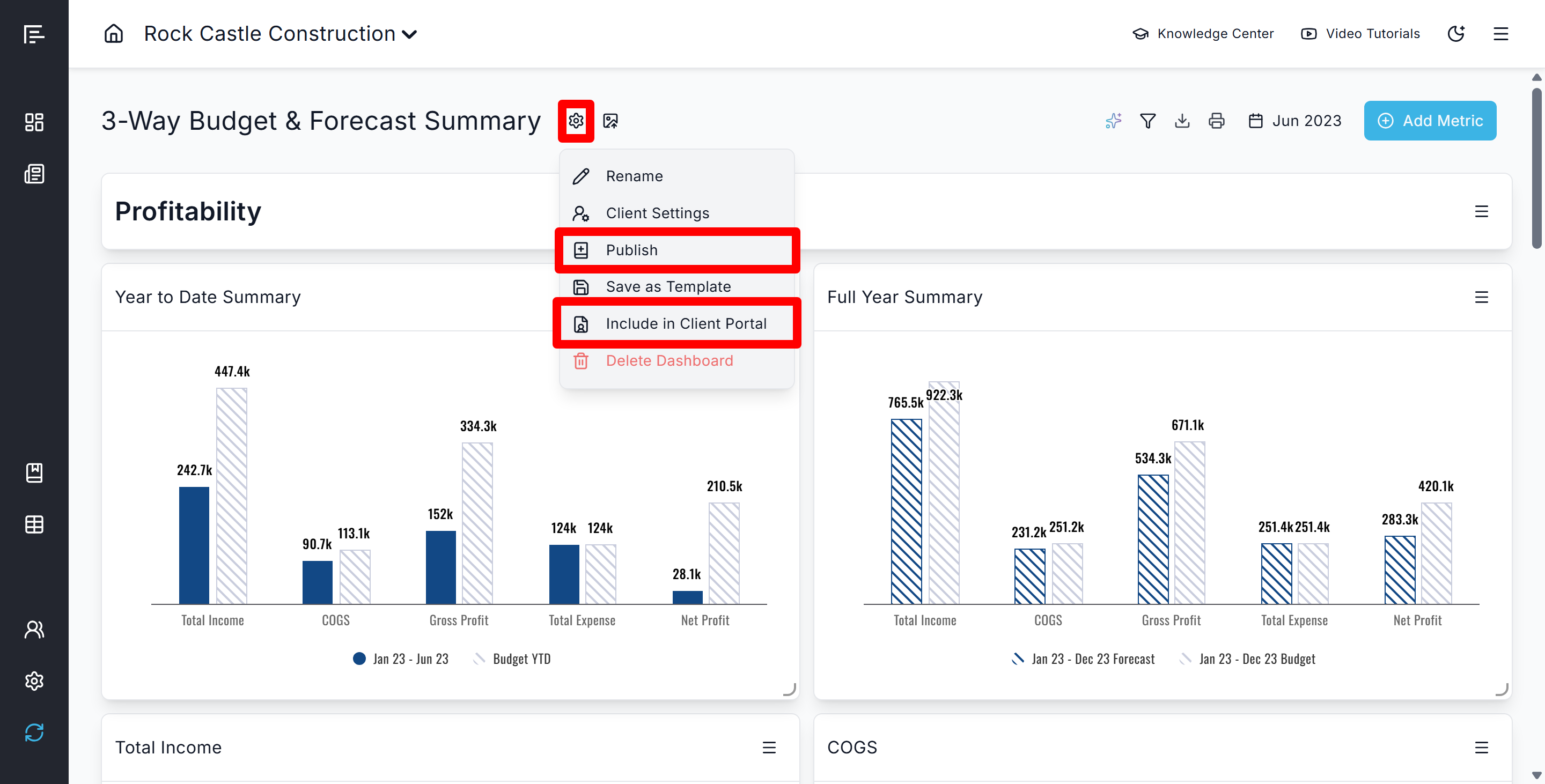 Client Portal Access: Publish monthly financial dashboards to the Client Portal with limited client settings to provide clients with consistent, curated views of their key metrics