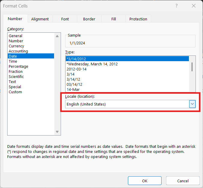 - The dates must also be formatted as "Date" within the Excel Sheet with the Locale as "English (United States)"