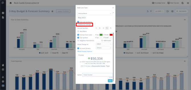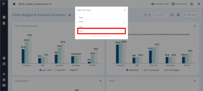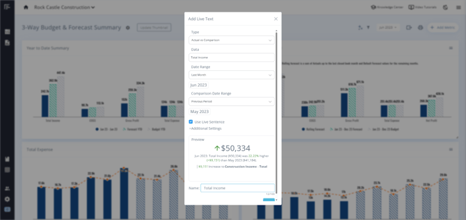 You can add Live Text from your Actuals or Budget/Forecast data, or show comparisons.