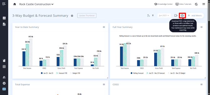 • Your dashboard may resize during the export process to fit the PDF format