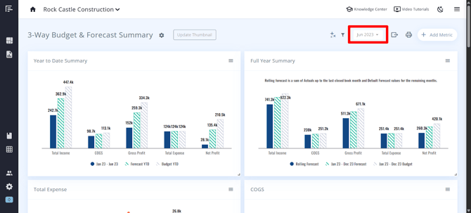 This option allows you to select which month of data you want to view from a dropdown menu. You can view historical data up to the book month set in the company settings. This feature is particularly useful for reviewing trends over time or comparing performance across different periods.