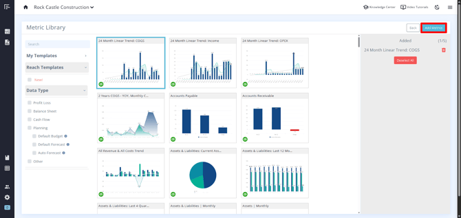 Once you select the metrics, select “Add Metrics,” and this will add them to your dashboard.