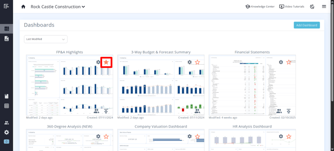 You can select the star to make a dashboard a favorite to give you quick access.