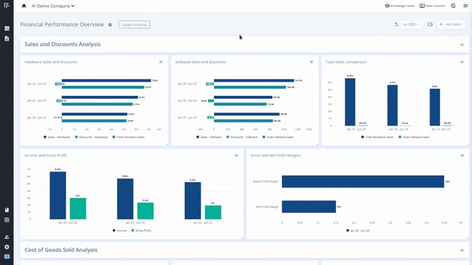 Our AI-enhanced reporting feature was designed to revolutionize the way you analyze and interpret your data. This advanced feature allows you to quickly analyze dashboards, providing you with deeper insights and a more comprehensive understanding of your data. Check out this Knowledge Center article for more on how to set up and utilize our AI-enhanced reporting tool