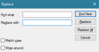 - If you're using a number format that doesn't have dot (.) as a decimal separator, use the Replace option (CTRL+H) to replace commas with dots