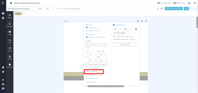 Note: Page settings are applied individually to each page, giving you flexibility to customize different pages within the same report.