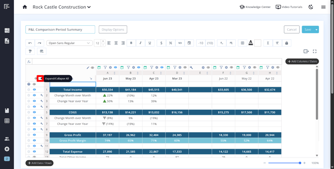 Expand/Collapse Groups Button – This icon collapses or expands all account groups at once. You can also find this icon on individual parent account rows if you want to expand or collapse only specific account groups.