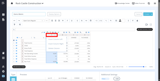When building metrics or statements in Reach Reporting, you have a full set of controls for managing rows and columns. Understanding these tools will help you customize exactly what data is displayed and how it is organized.