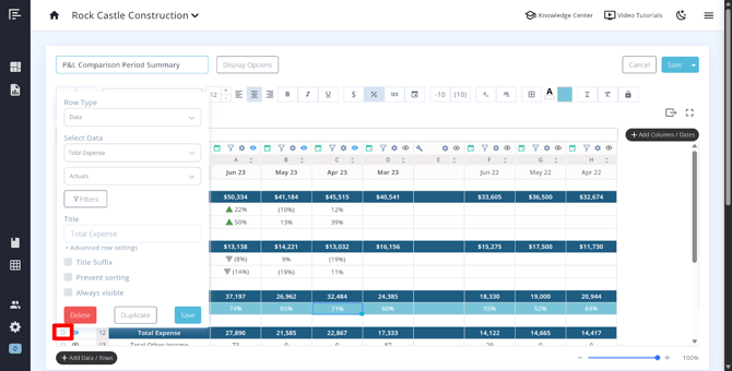 - If you need a column that shows a comparison to a prior period (for example, last year's actuals), use the Actuals column type with the appropriate date range and enable the Comparison Period option during setup.
