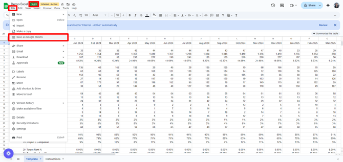 If you have already uploaded an Excel file to Google Drive, you can open the file, then navigate to File > Save as Google Sheets > connect the Google Sheets copy to Reach.