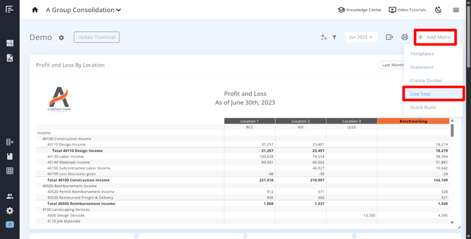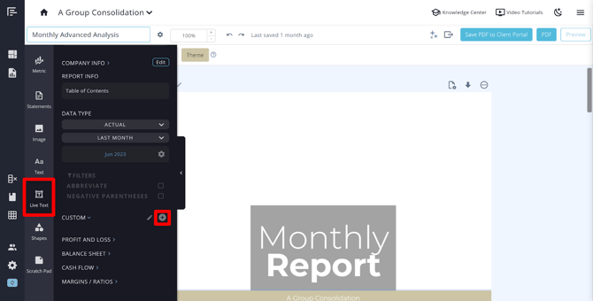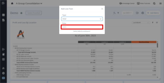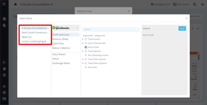 3. A pop-up will appear where you can configure the live data you wish to display. You can select from the consolidated totals or from each individual company.