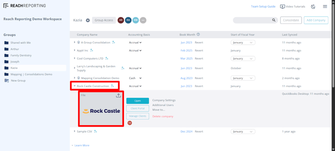 Once in your Workspace, you will see an enhanced user experience that allows for easier management of your clients. You can upload logos for each client right away by clicking on the client's name.